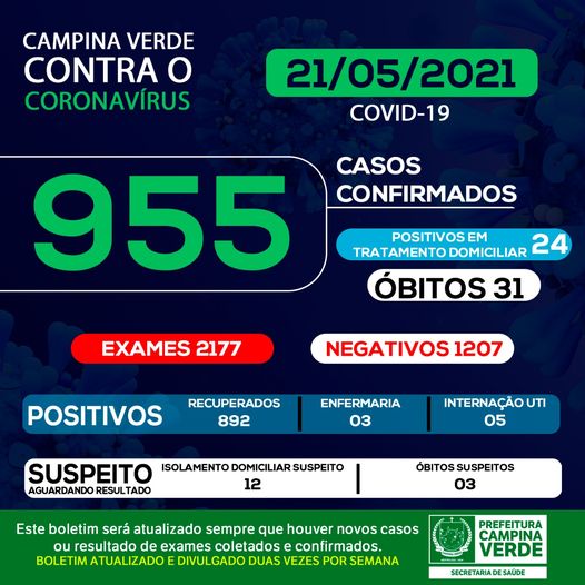 Campina Verde: Secretaria de Saúde juntamente com a prefeitura de campina verde divulgou os números epidemiológicos até o momento