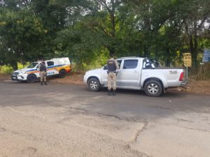 Nesta propriedade, os policiais militares se depararam com dois homens que estavam no local e um veículo Fiat/Pálio, com placas de Limeira/SP.