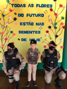 O aluno Murillo Devechi Fraccaro, representando toda comunidade escolar da Escola Municipal Lourival Baptista Câmara, realizou uma singela homenagem à Polícia Militar do nosso município, pelo Dia Nacional do Policial Militar.
