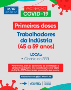 Ituiutaba: Vacinação contra a Covid-19 para trabalhadores industriais começa nesta terça-feira (6)