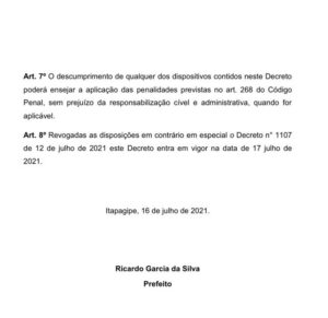 Itapagipe: A prefeitura divulga novos decretos com medidas para combater a propagação do vírus COVID-19