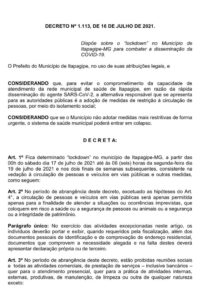 O número assustador de casos Covid-19 ocorrido nesta semana no município de Itapagipe fez com que medidas urgentes fossem tomadas hoje, dia 16 de julho, com a emissão de dois decretos com medidas de contenção ao coronavirus, sob os Nº 1113 e 1114.
