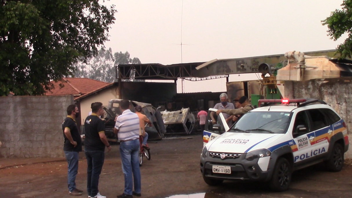 Campina Verde: Incêndio em oficina mecânica na madrugada desta quarta-feira destrói caminhões e equipamentos