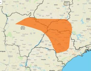 O alerta emitido pela Inmet prevê chuvas entre 30 e 60 milímetros em uma única hora, ou então, 100 milímetros em um dia. São esperadas rajadas de vento acima de 60 km/h e queda de granizo.