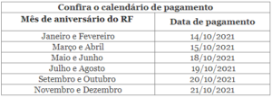 Confira abaixo os calendários de pagamento: