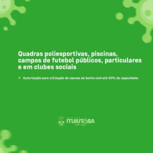 Será válida a regra de até 60% da capacidade de público no entorno ou nas arquibancadas. Uma novidade é a autorização para utilização de saunas de banho com até 40% da capacidade.