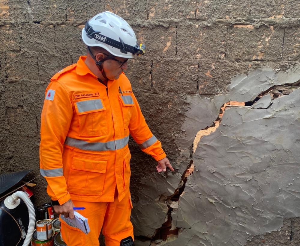 Ituiutaba: Bombeiros e Defesa Civil orientam moradores de duas casas a saírem dos imóveis por risco de desabamento