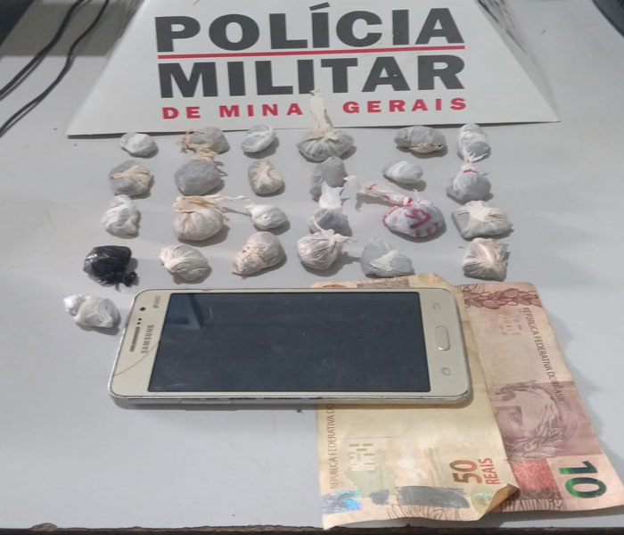De acordo com a Polícia, os militares conseguiram localizar, no local, 24 buscas de substância análoga a maconha, uma bucha da mesma substância e 60 reais que o suspeito de 18 anos teria dito ser proveniente da venda dos entorpecentes.