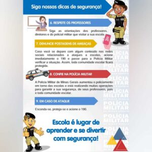 “Considerando que cada estudante e integrante da comunidade escolar pode contribuir para a rede de segurança, a cartilha tem como foco levar informações de autoproteção”, destacou o porta-voz da PMMG, Cristiano Araújo.