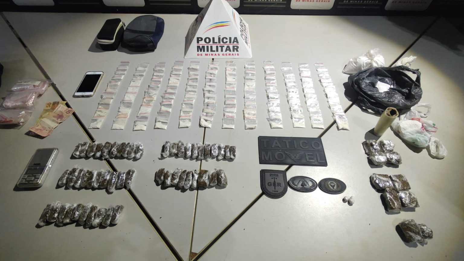 As diligências resultaram na apreensão de uma grande quantidade de materiais ilícitos. Entre os itens encontrados estavam 121 papelotes de uma substância semelhante à cocaína, 59 tabletes de uma substância semelhante à maconha, 36 gramas de “escama de peixe” (uma forma de cocaína), 652 gramas de ácido bórico, uma balança de precisão e duas pedras de uma substância semelhante ao crack.