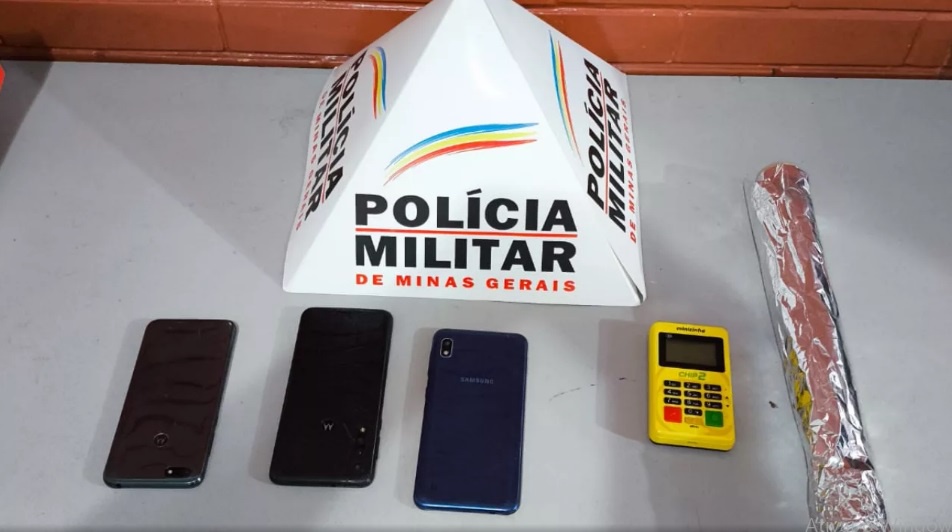 Embora ela não tenha sido localizada no momento, foram encontrados no local três celulares de procedência duvidosa e uma máquina de cartão.