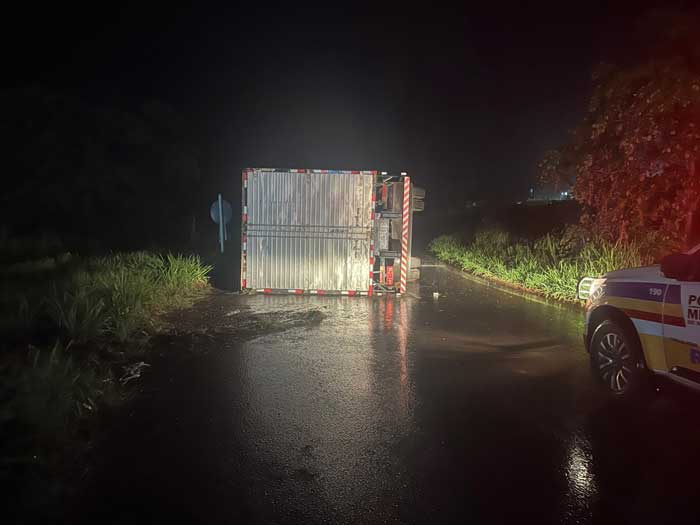 Iturama: Caminhão perde freios, tomba e interdita rodovia na MGC 497