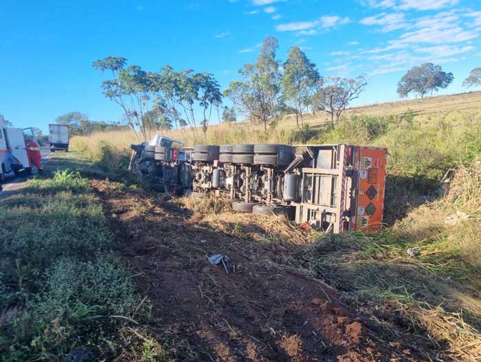 Prata: Caminhão tomba e interdita parcialmente a BR-153