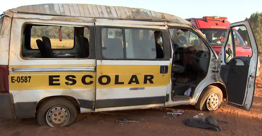 Uberlândia: Van escolar capota na zona rural do município; 15 crianças são socorridas