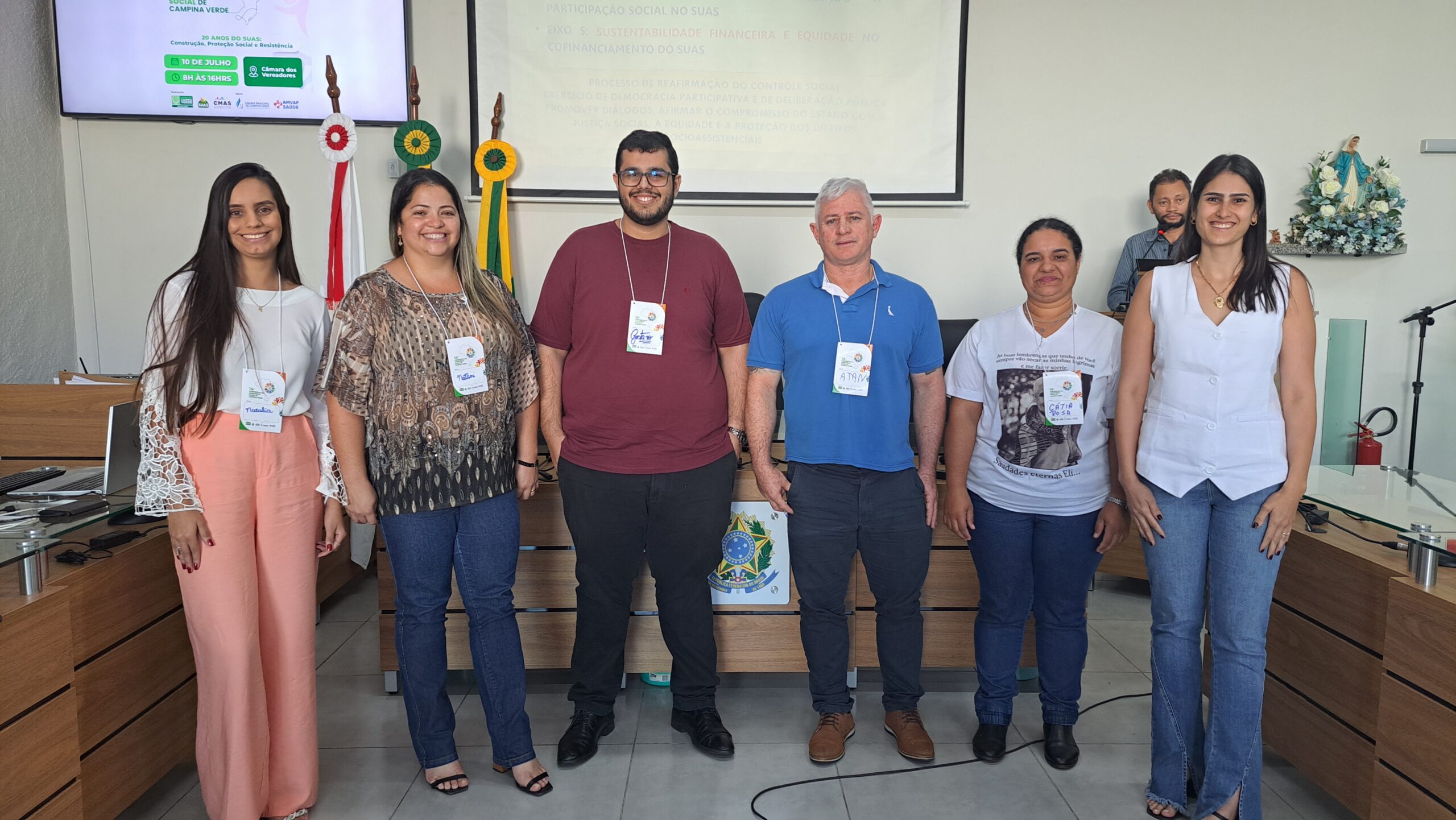 Nessa quinta-feira, 10 de julho, foi realizada no plenário da Câmara Municipal a 14ª Conferência Municipal de Assistência Social de Campina Verde, com o tema “20 anos do SUAS”. O encontro reuniu autoridades e representantes da sociedade para celebrar duas décadas de conquistas do Sistema Único de Assistência Social e discutir os rumos da política local. Estiveram marando presença no evento os vereadores Wellington Pretim, Ildo Coimbra, Tenente Araújo e Dasio de Honorópolis, além do vice prefeito Alan Couto, secretária de Assistência Social Vanesca Junia, representantes do CRAS, CREAS e secretaria de saúde do município.