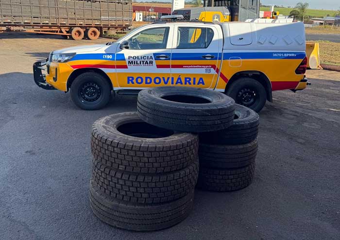 Na manhã desta segunda-feira, 4 de agosto, por volta das 7h56, a Polícia Militar de Minas Gerais, por meio do Batalhão de Polícia Militar Rodoviária, realizou a apreensão de sete pneus transportados de forma irregular na MGC-497, km 236, em Iturama (MG).
