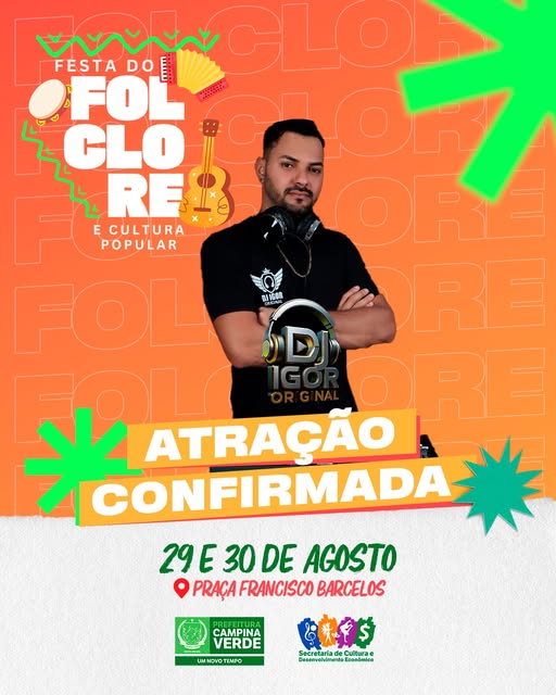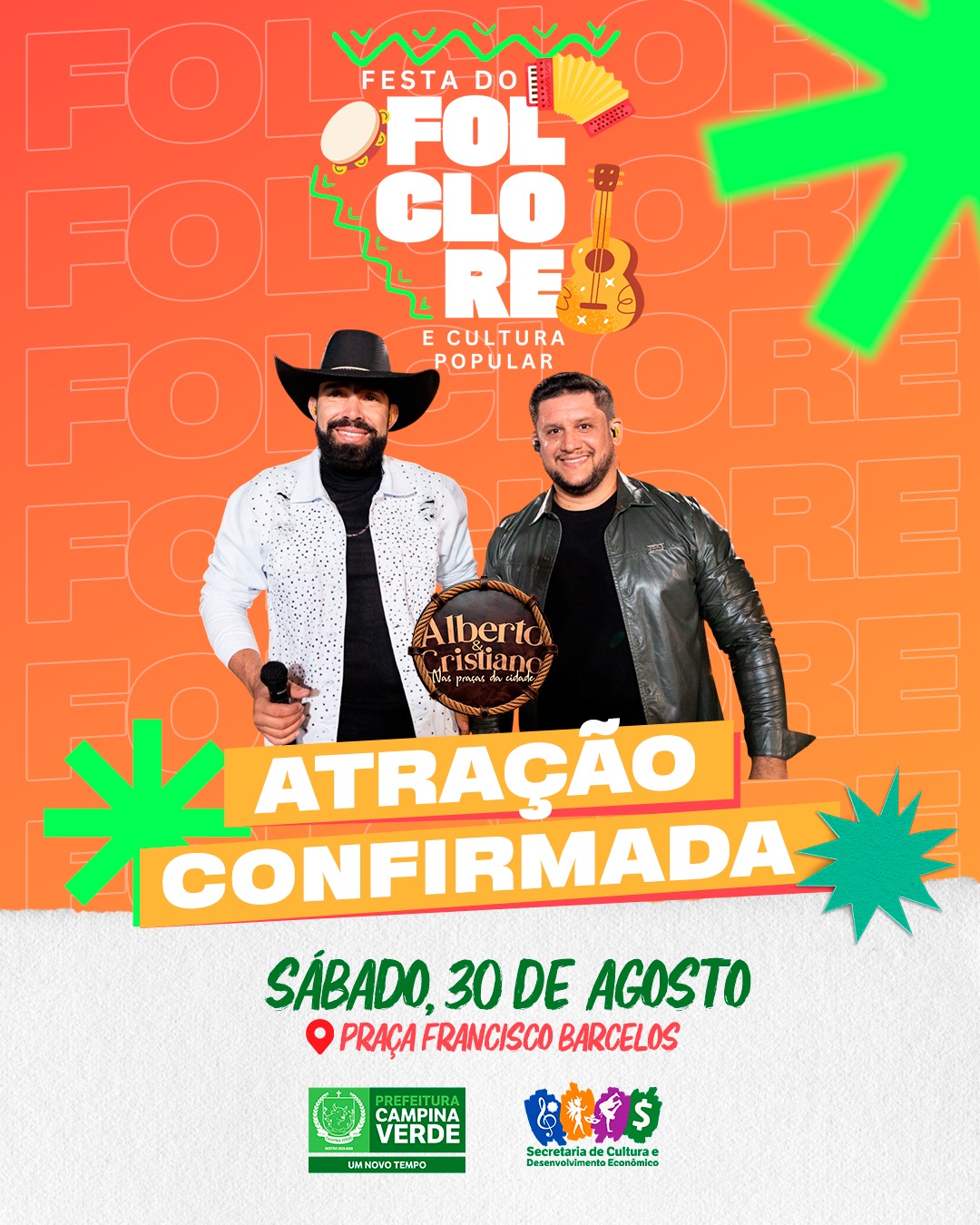 A prefeitura por meio da secretaria municipal de cultura divulgou nessa quarta-feira as atrações da tradicional Festa do Folclore e Cultura Popular de Campina Verde.