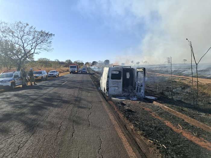 Canápolis: Ambulância pega fogo na MGC-154 e chamas atingem vegetação