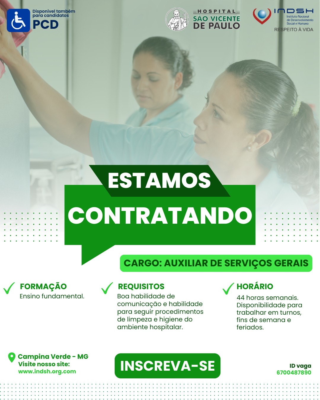 A direção do Hospital São Vicente de Paulo, informa que está com processo seletivo aberto para as seguintes vagas: