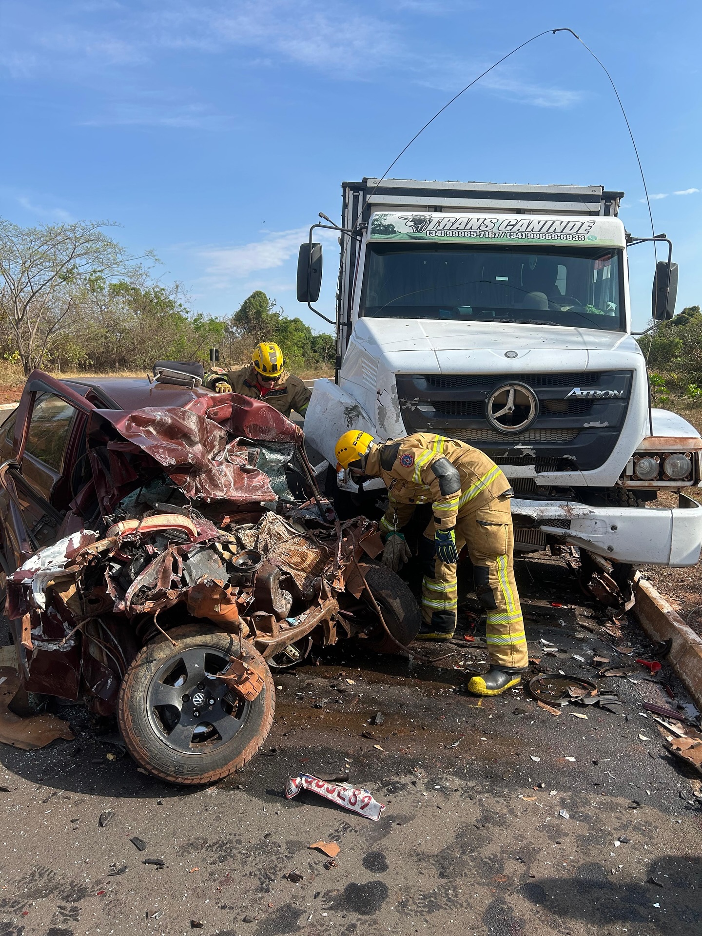 A vítima, F.B.R.F, do sexo masculino, 42 anos, morreu no local do acidente preso as ferragens.