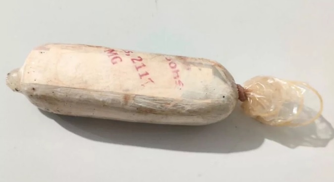 Durante a busca pessoal, foram encontrados um tablete de substância com características análogas à maconha, invólucros de fumo e papel seda — materiais frequentemente usados para preparo e consumo de drogas.