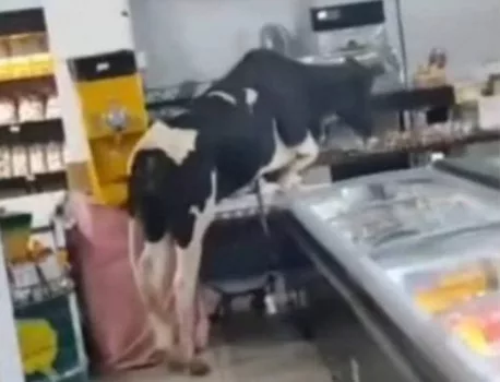 Imagens do circuito interno mostram o animal de grande porte caminhando entre as prateleiras e provocando correria entre clientes e funcionários. Em nota, o supermercado afirmou que ninguém se feriu e que o boi deixou o local sozinho após alguns minutos, sem causar danos.