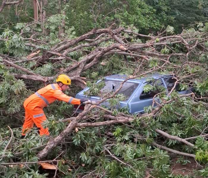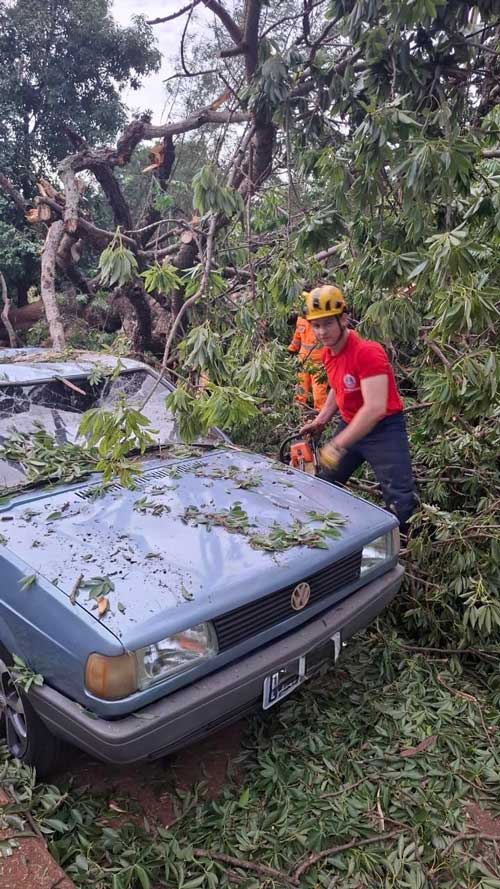 Entre os registros, uma árvore caiu sobre um veículo estacionado na Avenida Marginal, no Setor Norte. No momento da queda, não havia ninguém dentro do carro, e o proprietário, que mora nas proximidades, não se feriu.