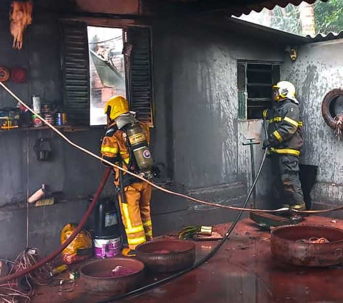 Ao chegarem ao endereço, os bombeiros encontraram o cômodo tomado por fumaça e com chamas ativas, mesmo após tentativas iniciais de controle feitas por terceiros. Havia ainda o risco iminente de desabamento do teto do quarto, o que aumentou a gravidade da ocorrência.