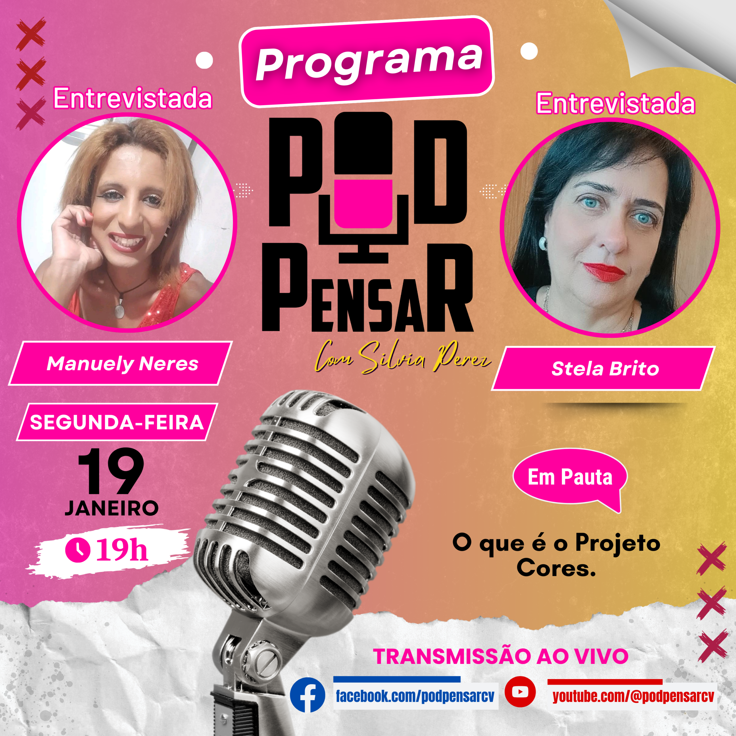 Com foco na inclusão social, o programa Pod Pensar desta segunda-feira, 19 de janeiro, recebe as entrevistadas Manuely Neres e Stela Brito para um bate-papo especial sobre o Projeto Cores. 🎨🤝