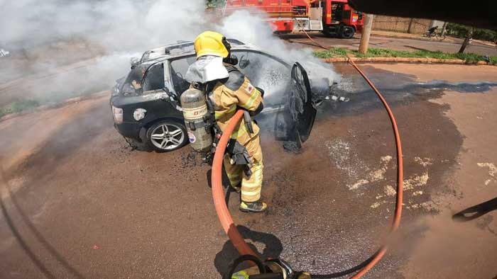 De acordo com a corporação, o 2º Pelotão dos Bombeiros foi acionado por volta das 11h30, por meio do telefone de emergência 193. Ao chegarem ao local, os militares encontraram um veículo de passeio completamente tomado pelas chamas.