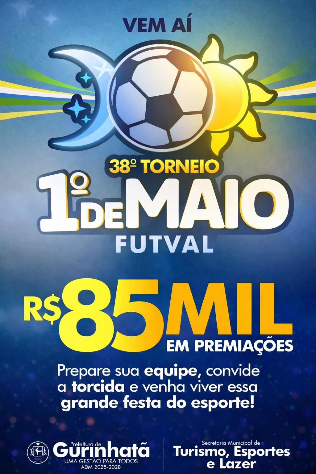 A Prefeitura de Gurinhatã, por meio da Secretaria Municipal de Esporte, Turismo e Lazer, anunciou a realização do 38º Torneio de 1º de Maio, um dos eventos esportivos mais tradicionais de toda a região.