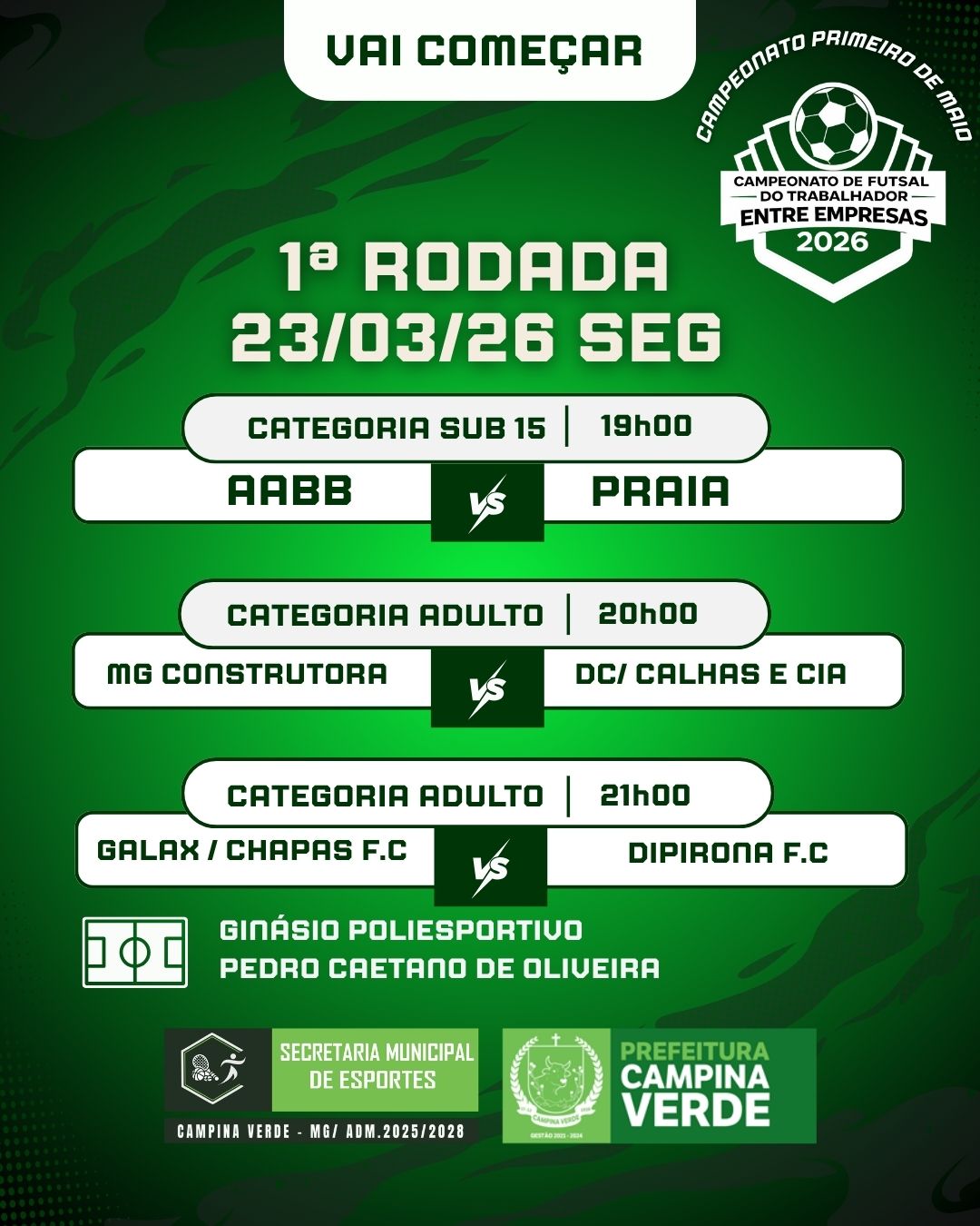 A cidade de Campina Verde dá início nesta segunda-feira (23) ao Campeonato de Futsal do Trabalhador entre Empresas 2026, uma das competições esportivas mais aguardadas do calendário municipal.