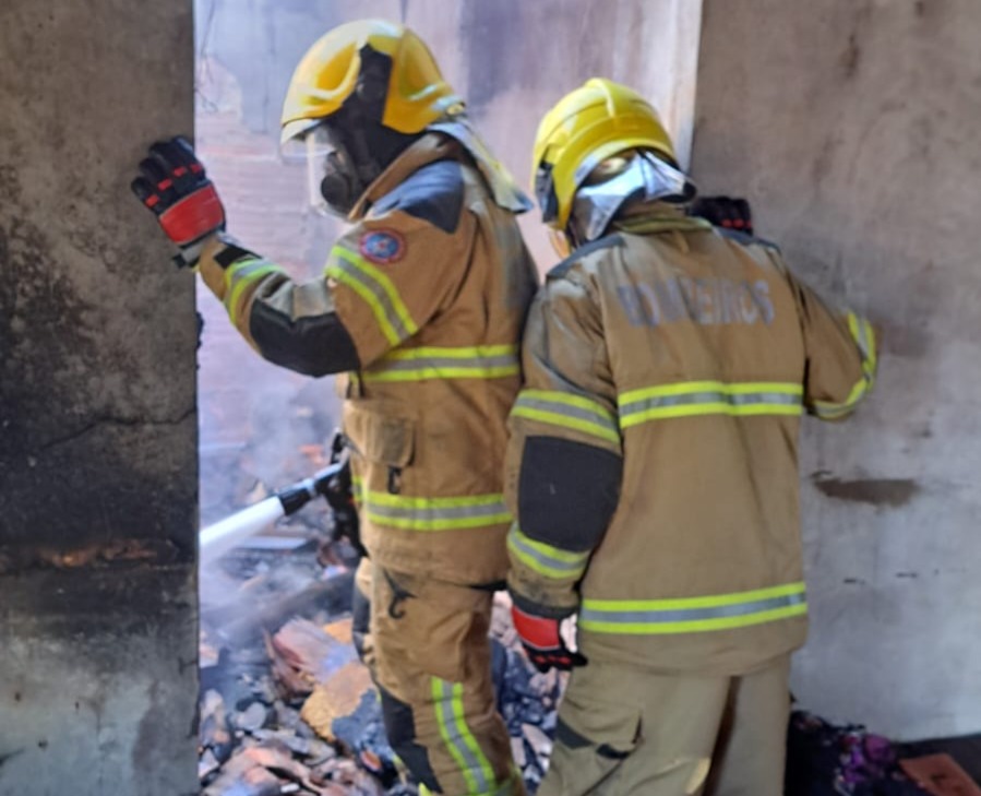 Fogo foi parcialmente controlado por vizinhos antes da chegada dos bombeiros; não houve feridos