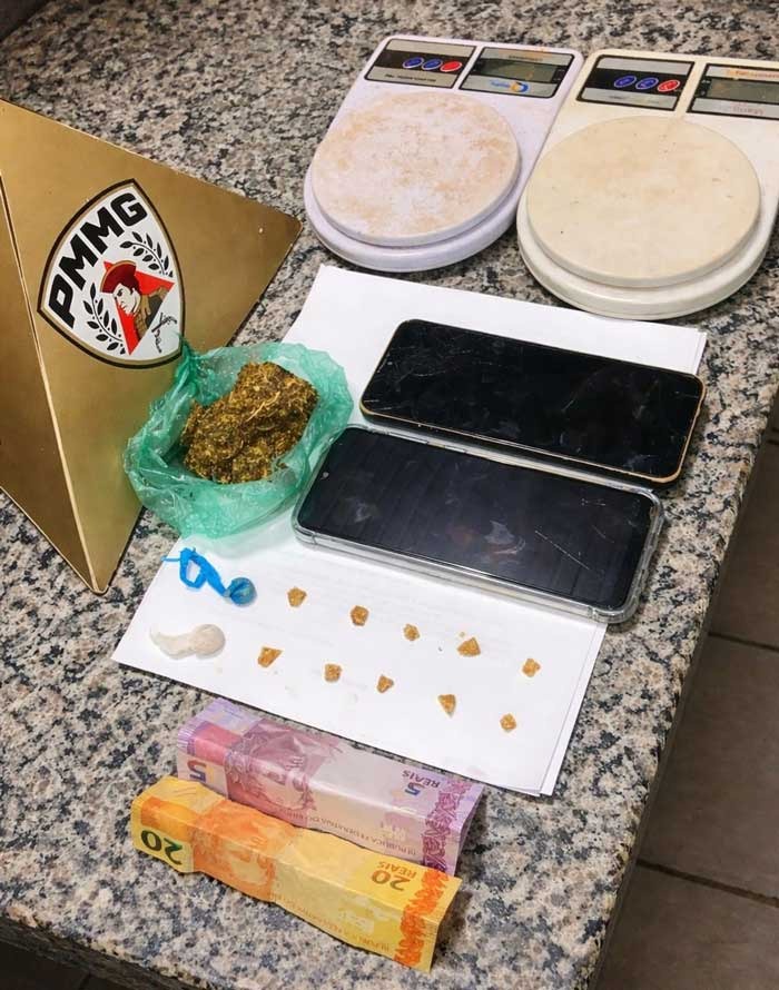 Durante as diligências no imóvel, os militares localizaram porções de substâncias análogas à maconha e ao crack, já fracionadas e prontas para venda, além de balanças de precisão e dinheiro em espécie, indicando a prática do tráfico.