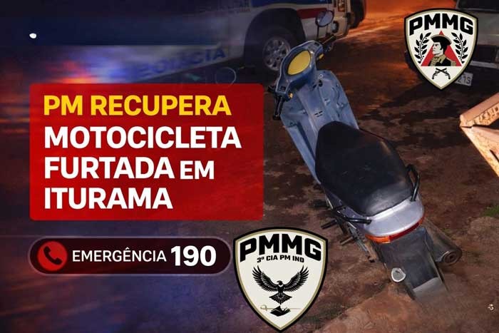 A Polícia Militar de Minas Gerais recuperou, no dia 11 de abril de 2026, uma motocicleta com registro de furto no município de Iturama.