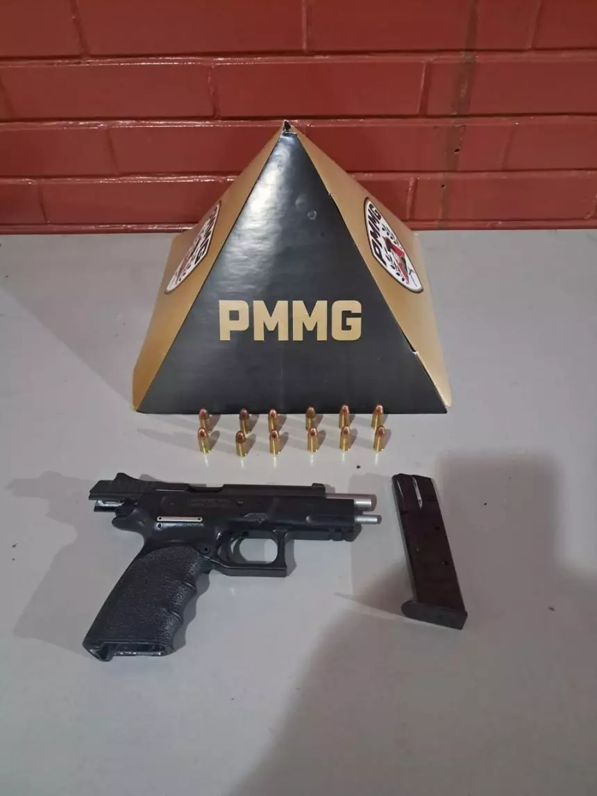 Ao chegarem, os militares localizaram o indivíduo e realizaram a abordagem. Durante a busca no interior do veículo vinculado ao suspeito, foi encontrada uma pistola calibre 9mm, de fabricação israelense, na cor preta.