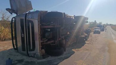 Campina Verde: Caminhão tomba na MGC-497 e interdita parcialmente a pista