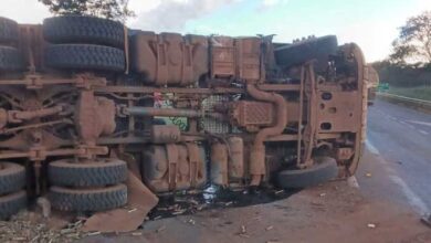 Ituiutaba: Carreta carregada de cana de açúcar tomba em trevo na MG 154 com acesso da BR 365