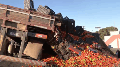 Uberlândia: Carreta carregada com tomates tomba na BR-050 e PRF autua motoristas por saquear
