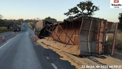 Monte Alegre de Minas: Tombamento de carreta interdita BR-153 e mobiliza equipes de resgate