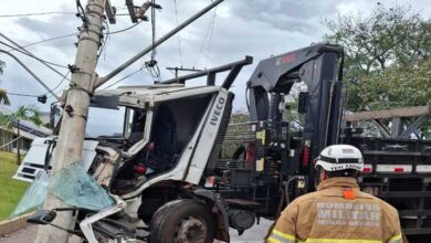 Ituiutaba: Caminhoneiro fica preso às ferragens após colidir com poste e derrubar fiação energizada