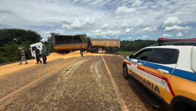 Ituiutaba: Acidente com carga de milho interdita totalmente rodovia MGC-154