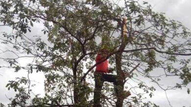 Ituiutaba: Bombeiros atendem ocorrência de queda de árvore sobre muro no bairro Portal dos Ipês