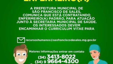 Oportunidade de Emprego: Prefeitura de São Francisco de Sales está contratando enfermeiros padrão