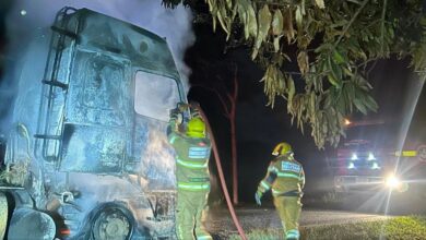 Gurinhatã: Bombeiros combatem incêndio em carreta na rodovia MG-461, próximo a cidad